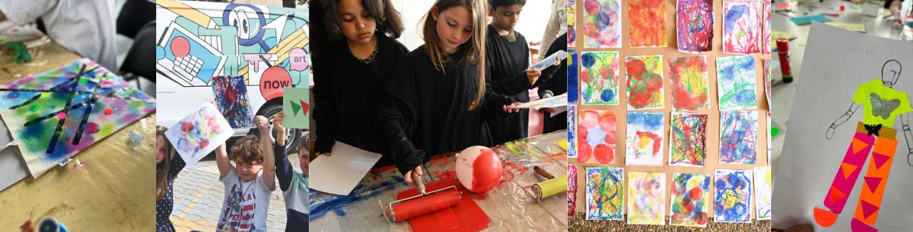 Altersgerechte Techniken wie Malerei, Druck, Collage oder Trickfilm werden kreativ erprobt.